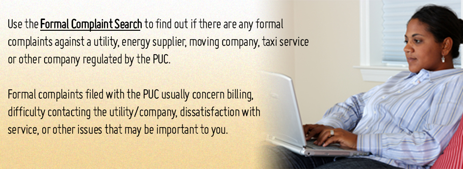 Using prominent links on the PUC website, you can now automatically jump to the complaint search for specific types of regulated utilities, including: electricity, natural gas, telecommunications, water/wastewater and transportation. Additionally, a “Search for Consumer Complaints” link has been added to each industry category on the website, and this is the first link provided to visitors who are reviewing information on the site.